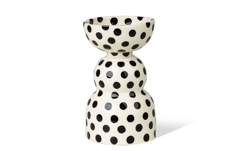 Устойчивый керамический подсвечник в новой росписи в горошек - яркое украшение вашего стола.