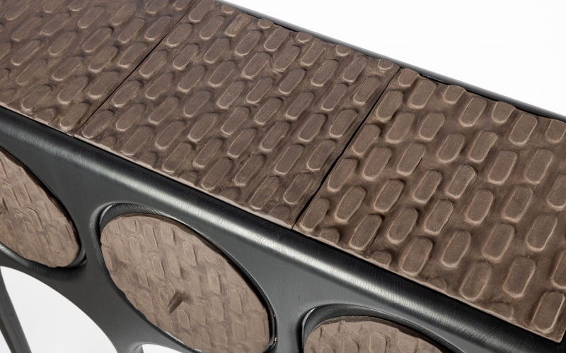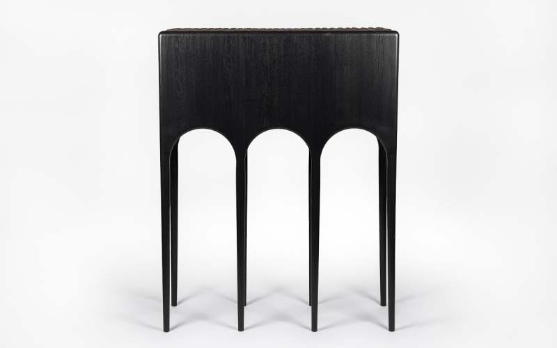 Высокий, стройный, словно из сказки, "Larchik" стоит на утончённых ножках и манит взгляд своим загадочным обликом. В его конструкции использованы массив дуба, натуральный шпон, МДФ, стекло и шамот — именно последний материал позволяет воплотить уникальный керамический декор, выполненный в технике ручной лепки. Каждая деталь — от изогнутых линий корпуса до причудливых ручек — тщательно проработана мастерами и делает комод настоящим украшением интерьера.