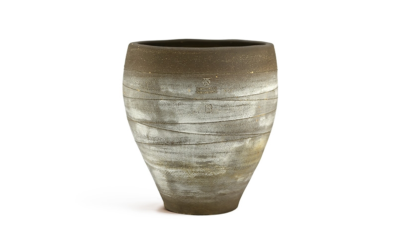Характерная особенность — белые ручные разводы, подчёркивающие фактуру глины, и асимметричные прорезные линии по окружности. Эти элементы придают кашпо художественную глубину и уникальность.