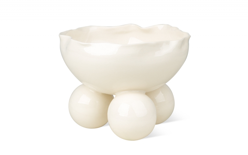 Эта керамическая чаша будто ожила — у неё есть ножки, настроение и лёгкий озорной характер. Кажется, она не просто стоит на столе, а участвует в вашей жизни — дополняет сервировку, держит ваши украшения или ягоды, и задаёт тон всей композиции.