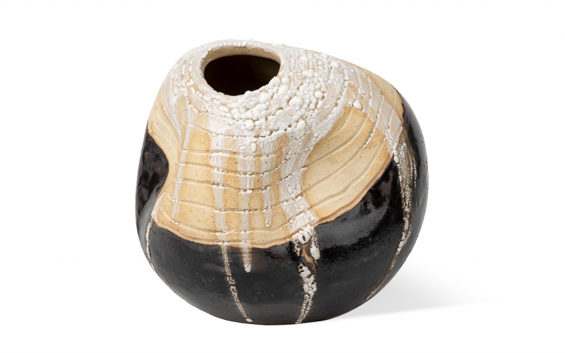 Керамический сосуд ручной работы — выразительный арт-объект с живой фактурой и характером. Его округлая, почти скульптурная форма притягивает взгляд, а сочетание глубокого тёмного основания с тёплыми песочными оттенками создаёт эффект природной гармонии.